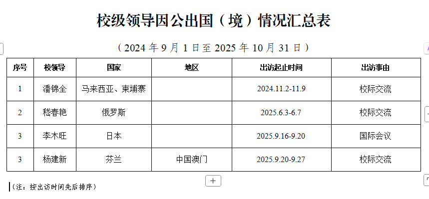 2024-2025学年校级领导因公出国(境)情况汇总表
