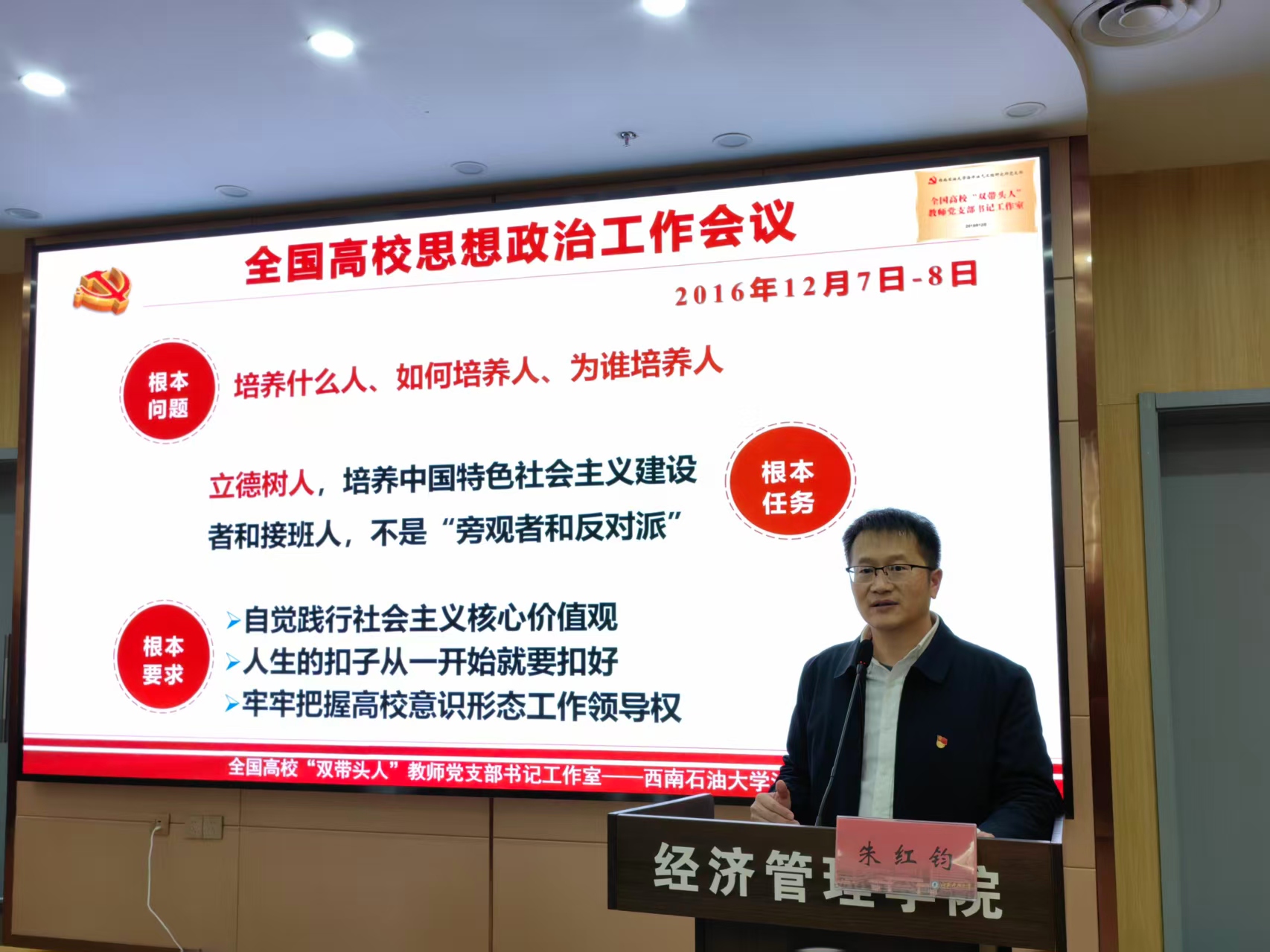 为深入贯彻落实新时代党的建设总要求和新时代党的组织路线,高质量推进我校党建工作提质增效,11月28日下午,党委组织部举办基层党务工作者履职能力提升专题培训。全国优秀党务工作者、全国高校“双带头人”教师党支部书记工作室负责人、全国高校“双带头人”教师党支部书记“强国行”专项行动团队负责人、西南石油大学海洋油气工程研究所党支部书记朱红钧教授应邀作专题辅导报告。我校获批的全国、全省和校级样板党支部书记、各二级党组织组织员等参加培训。